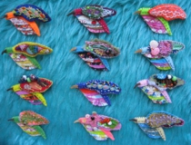 不要になった布・刺繍糸等を回収。それらを使い、アクセサリーを製作~販売。